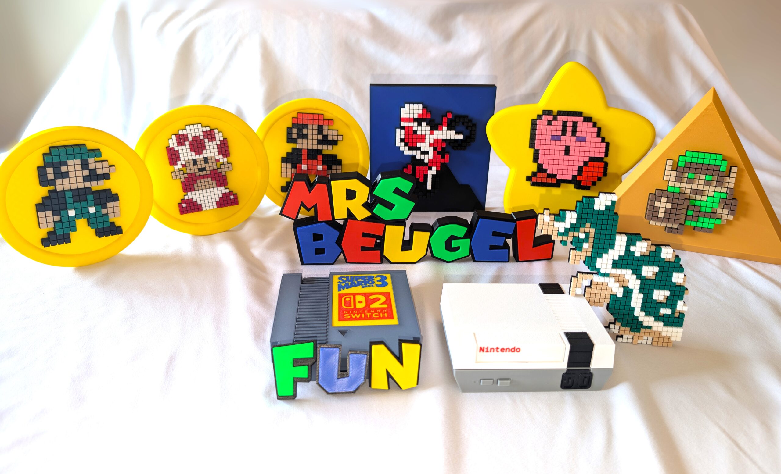3D Printed 8-Bit Nintendo Characters – Wall Art, Desk Display, Optional Stand & Background